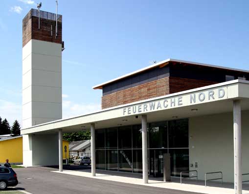 | The North fire brigade building: When the alarm sounds, KNX switches on the lighting on the traffic routes. |